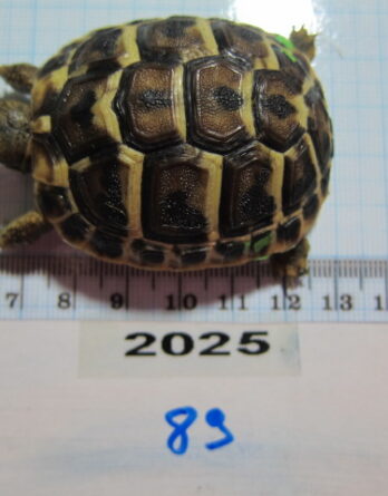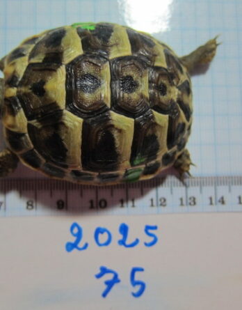 De la célèbre tortue d’Hermann, dite testudo d’Hermanni « sous espèce testudo HERMANNI HERMANNI » d’origine Française. Localisées: dans le sud de la France et en Corse. Couleur jaune pâle à jaune orangé, motifs noirs denses et étendus. Son plastron est composé de deux bandes/tâches noires discontinues à continues.